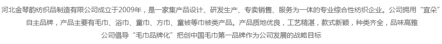 河北金琴韻紡織品制造有限公司經(jīng)過多年積累形成了毛巾禮品策劃、創(chuàng)意設(shè)計(jì)、包裝制作為一體的專業(yè)服務(wù)性毛巾禮品運(yùn)營(yíng)機(jī)構(gòu)。公司成立以來一直與國(guó)內(nèi)知名禮品公司緊密合作,建立了戰(zhàn)略合作伙伴關(guān)系。
